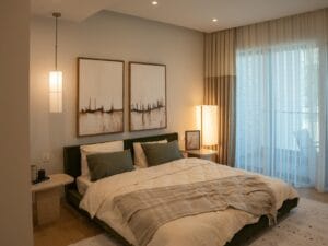 • Au-dessus du divan ou du lit : le tableau doit mesurer environ les 3/4 de votre mobilier