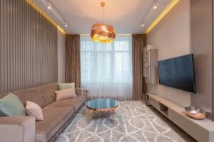 • Astuce: si vous installez à l’extérieur du cadrage de fenêtre vos rideaux dont la couleur rappelle celle du mur, vous aurez l’impression que votre fenêtre est encore plus large
